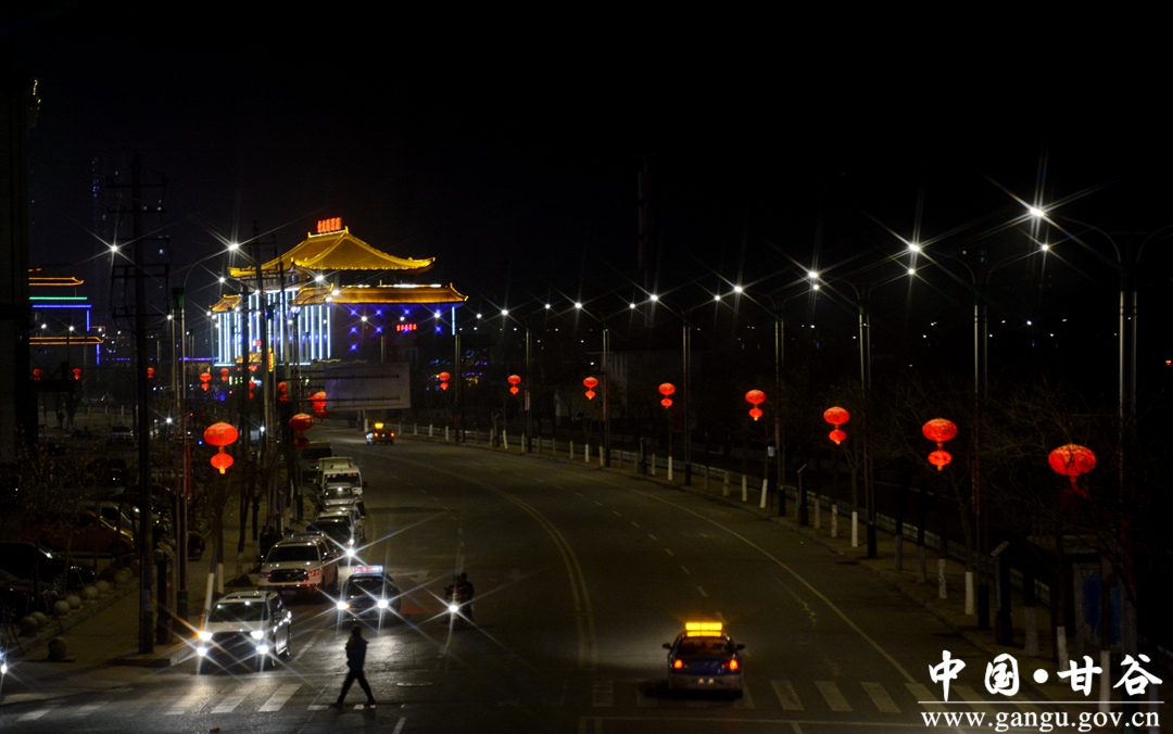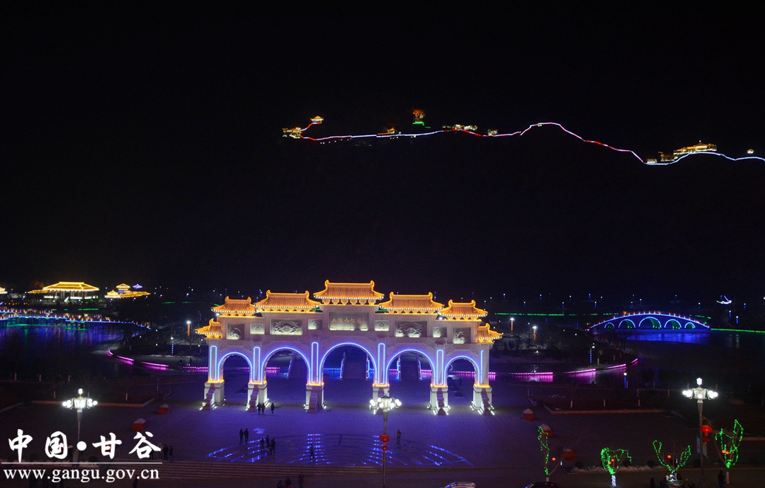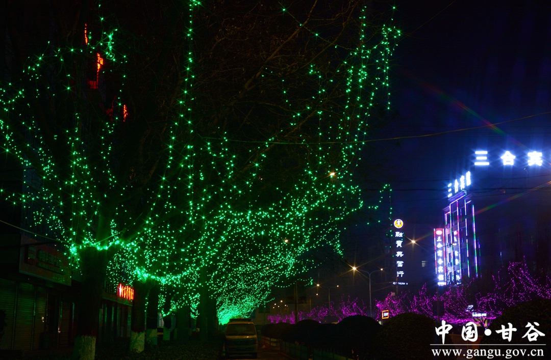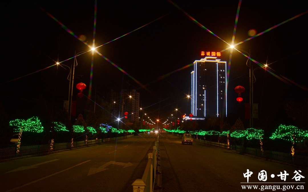 春节期间,甘谷县依托城区现有夜景灯光体系,突出喜庆、祥和、勤俭理念,以国旗、中国结、树挂串灯、实景造型为主体,融入地域文化元素,对重点区域、主要道路、建筑物进行设计装点,营造了安定祥和、欢乐文明、普天同庆的节日气氛。