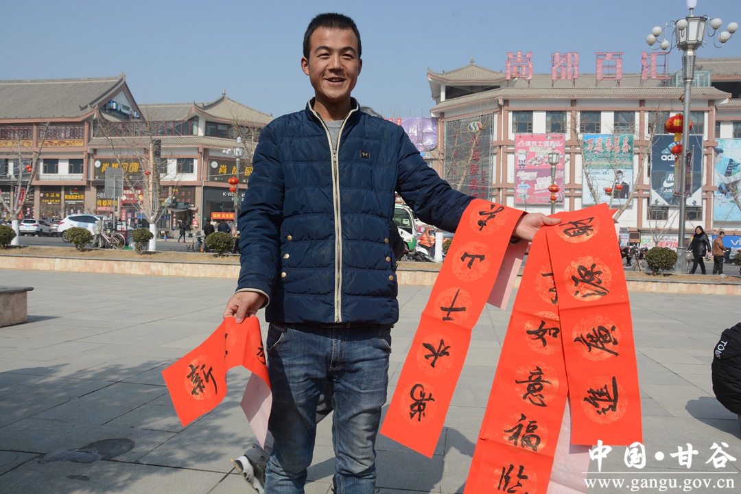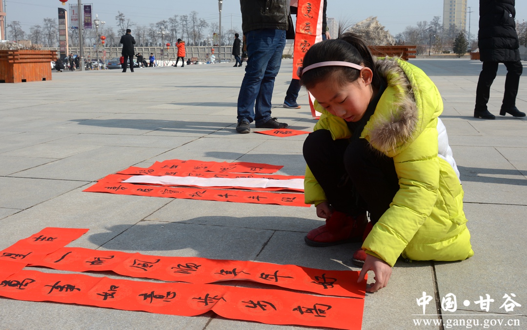 活动现场人头攒动,热闹非凡。工作人员忙着搬桌子、拉条幅,群众闻讯纷纷赶来。面对热情的群众,书法家不畏严寒,迅速铺红纸,润笔、蘸墨、挥毫……一副副春联在叫好声中诞生。“犬效丰年家家富,鸡鸣盛世处处春”“九州日月开春景,四海笙歌颂狗年”……地上、台阶上铺满了一幅幅大红春联,内容以家乡的喜人变化和新年祝福为主,弘扬主旋律、传播正能量。一幅幅苍劲有力的春联,表达了对新年的美好祝愿。尽管天寒地冻,但书法家手中的笔却一刻不停,排队等候领取春联的市民络绎不绝。“这字真漂亮!这样的春联看着舒服,比买的印刷品好。”拿到春联的张女士高兴地说。在短短3小时的活动时间里,我县书法家为广大市民免费书写春联千余副,受到群众一致好评。