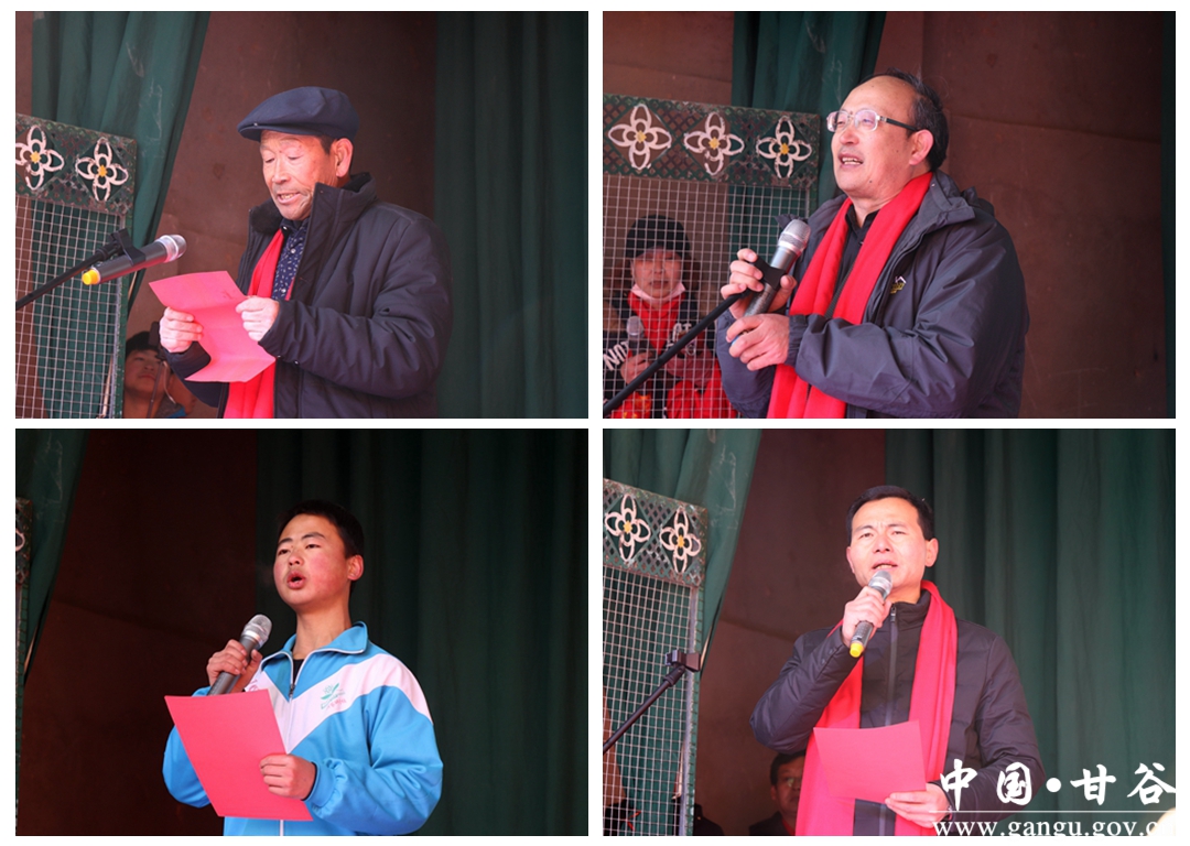 张笑青在讲话中说,一百年前,乡贤前辈张国勋、李文蔚等老先生热心教育,创办伏羌县第六区区立第二小学,开新式教育先河,注穷乡僻壤春风。历经多年,以“仁智勇”为校训,形成“博学、审问、慎用、明辨、笃学”校风,树立“发扬固有文化,恢复民族精神”办学思想,全体师生努力,广大村民扶持,规模逐渐扩大,课程日趋完善,师资日渐优化,质量稳步提升。希望何家坪学校全体师生,在习近平新时代中国特色社会主义思想的指引下,全面贯彻党的十九大精神,全面落实立德树人根本任务,进一步深化教育教学改革,大力提升教师素质,不断加强学校管理,努力提高教育教学质量,为推动甘谷教育乃至全市教育事业发展做出新的更大的贡献。