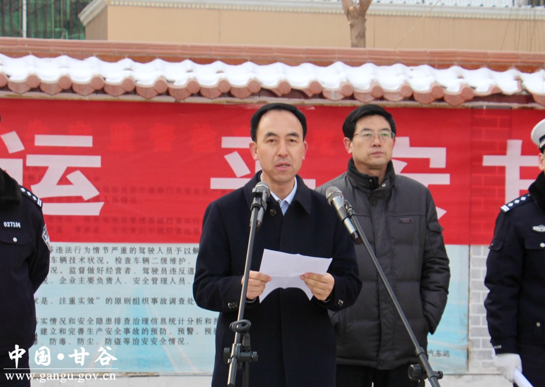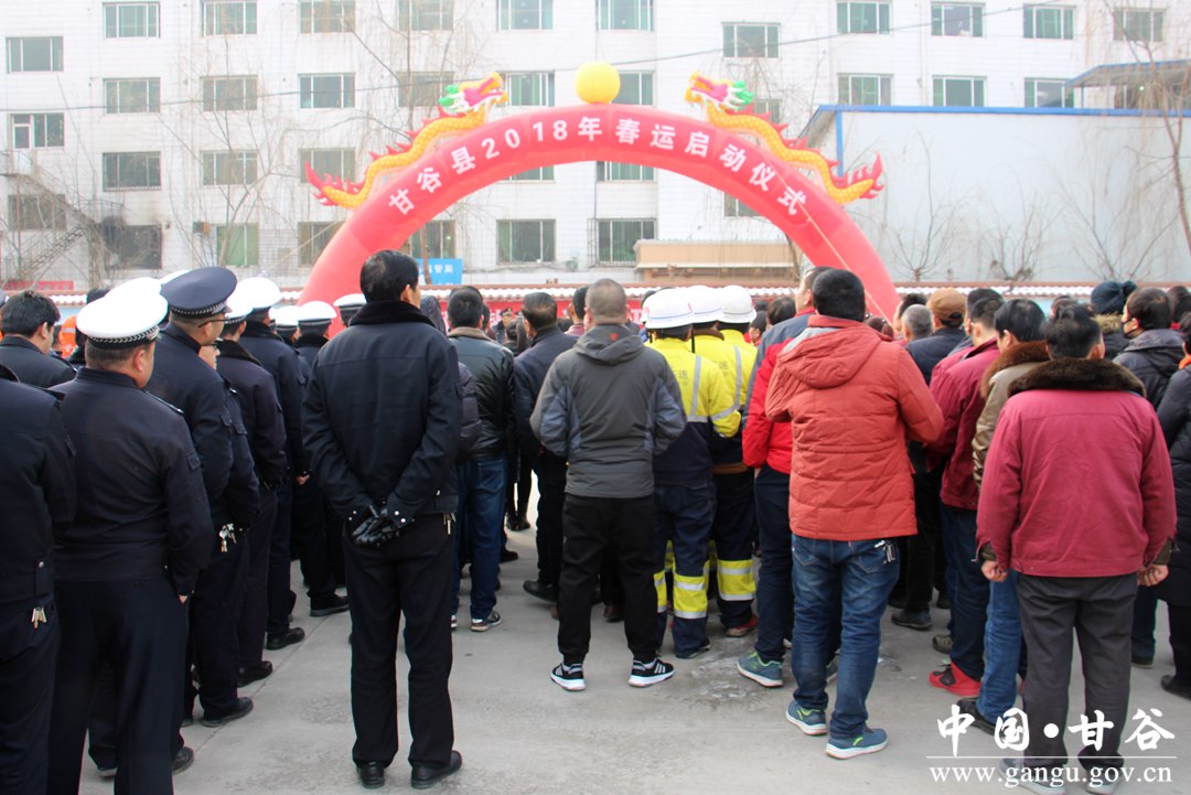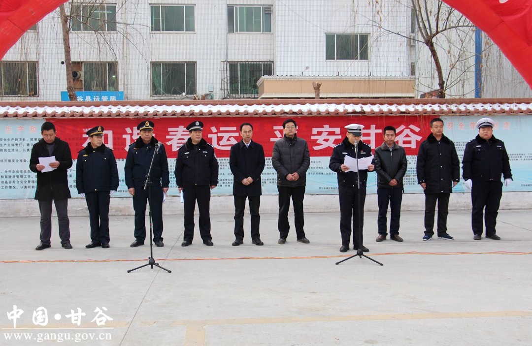 2月1日,甘谷县2018年春运工作启动仪式在城区客运汽车站举行。县委常委、政法委书记冯全敬出席仪式并讲话;县公安局、运管局、交警大队、新兴高速交警大队、公路段、汽车站、运输企业等相关单位负责人及部分春运工作人员、驾驶员代表共计300多人参加仪式。
