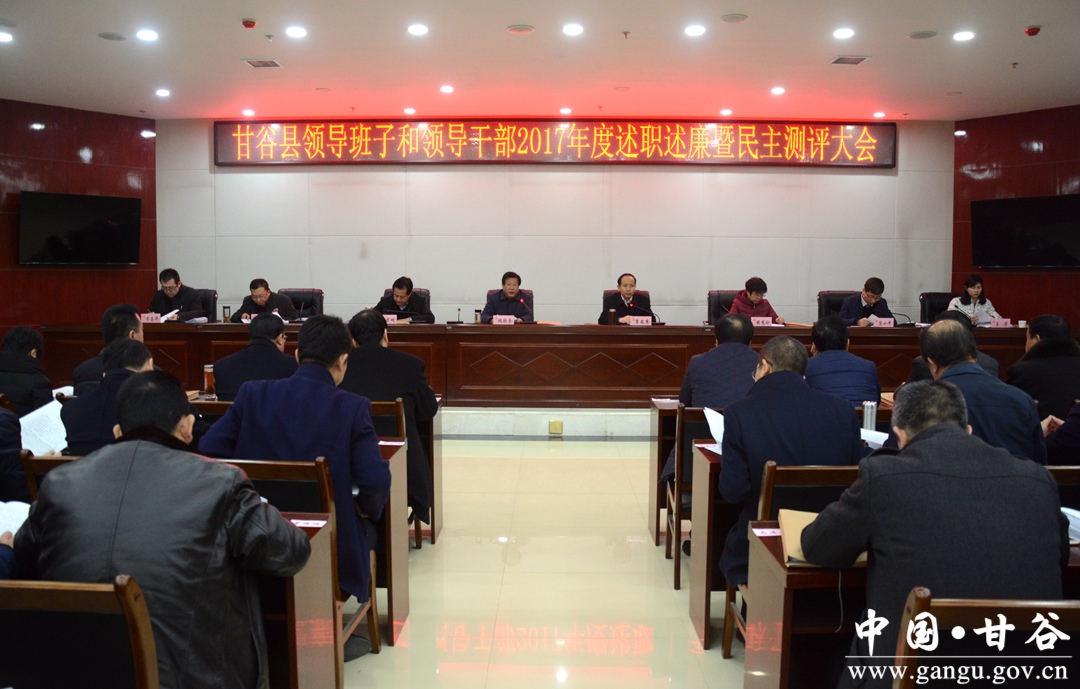 在当日上午召开的甘谷县领导班子及领导干部2017年度述职述廉暨民主测评大会上,县委书记贾忠慧代表县委常委班子作述职述责述廉报告和个人述职述廉报告,县委副书记、县长申君明代表县政府班子作述职述责述廉报告和个人述职述廉报告,考核组人员对我县市管领导班子和领导干部进行了民主测评。