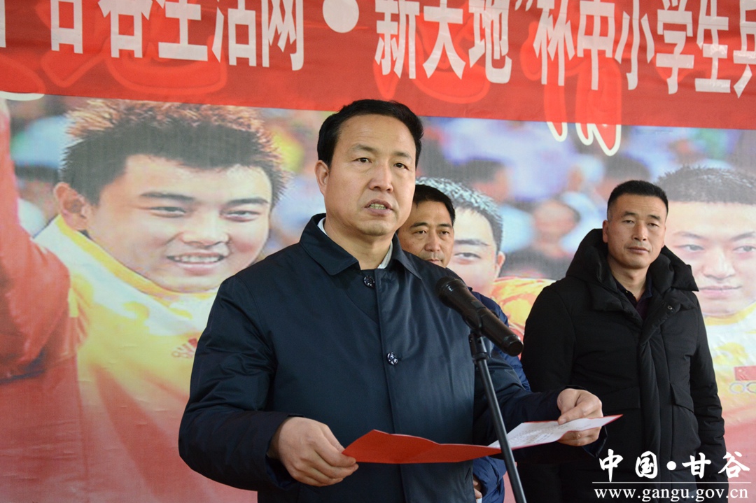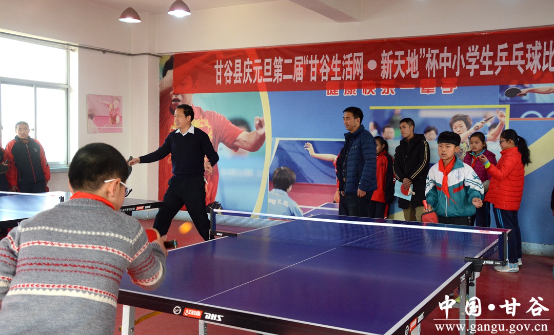 12月27日,甘谷县举办庆元旦第二届“甘谷生活网·新天地”杯中小学生乒乓球比赛,县委常委、宣传部长张庆元出席开幕式并讲话,县教体局及全县中小学校参赛选手参加。