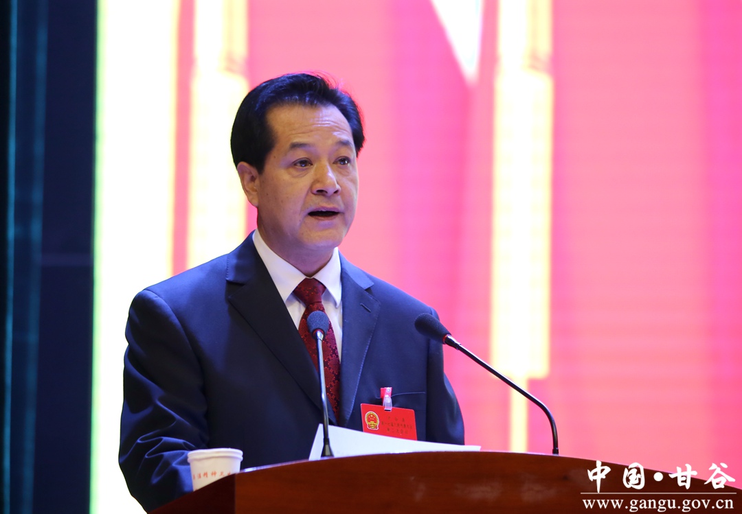 申君明说,2018年是贯彻落实党的十九大精神的开局之年,是全面建成小康社会的攻坚之年,也是实现整县脱贫的决胜之年,做好经济社会发展各项工作意义重大、影响深远。政府工作的总体思路是:全面贯彻党的十九大精神,坚持以习近平新时代中国特色社会主义思想为指导,深入贯彻落实习近平总书记视察甘肃重要讲话精神和“八个着力”重要指示精神,坚持稳中求进工作总基调,牢固树立和贯彻落实新发展理念,紧扣人民日益增长的美好生活需要和不平衡不充分的发展这一主要矛盾,按照高质量发展的要求,统筹推进“五位一体”总体布局和协调推进“四个全面”战略布局,坚持“以商兴城、以城带乡、工农互促、全面发展”工作思路,以供给侧结构性改革为主线,统筹推进稳增长、促改革、调结构、惠民生、防风险各项工作,坚决打好防范化解重大风险、精准脱贫、污染防治三大攻坚战,促进经济社会持续健康发展,率先在全市实现整县脱贫摘帽,奋力开启新时代全面建成小康社会新征程。经济社会发展主要预期目标为:地区生产总值增长6%;大口径财政收入增长7%;固定资产投资增长6%;规模以上工业增加值增长5%;社会消费品零售总额增长9%;城镇居民人均可支配收入增长8%;农村居民人均可支配收入增长9%。围绕上述目标要求,县政府将着力抓好十个方面的工作:一是决战决胜脱贫攻坚,夯实全面建成小康社会基础,坚持以脱贫攻坚统揽经济社会发展全局,紧盯整县脱贫总目标,以精准扶贫精准脱贫为主线,深入实施“1+18”脱贫方案,精准落实“七个一批”脱贫路径,举全县之力,集全县之智,扎实开展精细精确精微“绣花”式扶贫,集中力量攻坚深度贫困,补齐差距短板,增强脱贫内生动力、健全扶贫工作机制,全面提升贫困区域基础条件、富民产业、公共服务水平,确保退出贫困村120个以上,减少贫困人口2万人以上,贫困发生率下降到3%以下,坚决摘掉贫困帽子,为全面建成小康社会奠定坚实基础。二是强化项目带动引领,提升基础设施支撑保障能力,继续抓好重点项目建设,认真落实“三重”“三一”要求,全力实施好总投资190亿元的115个重大项目,促进固定资产投资稳定增长;积极谋划争取项目,抢抓丝绸之路经济带、关中—天水经济区、华夏文明传承创新区建设等重大历史机遇,准确把握国家产业政策和投资导向,围绕脱贫攻坚、基础建设、产业培育、公共服务、生态治理等重点领域,论证储备一批补短板、强弱项、夯基础的大项目;提高招商引资实效,依托四大产业园区平台,围绕延长产业链条、打造产业集群,以机械制造、商贸流通、电子商务、文化旅游等为重点,积极承接东部发达地区产业转移,大力开展节会招商、委托招商、精准招商、产业链招商,引进一批发展潜力大、带动能力强的大项目。着力加强项目管理,全面实施“六个清单”管理制度,积极推行联审联批、并联审批,优化审批流程,简化审批环节,提高项目审批效率,严格落实项目法人责任制,确保项目程序合规、管理规范、质量可靠。三是突出基础设施提升,推进城乡协调协同发展,高起点编制县域经济中长期发展规划,健全完善规划体系;统筹推进西城区、永宁路片区、渭北片区、冀城路两侧开发建设,完善城市综合服务功能,加快城市建设步伐;全力推进省级文明县创建,扎实开展城市环境秩序综合整治,积极推进“智慧城市”建设,提升城市管理精细化、数字化、智能化水平,提升城市管理水平;突出抓好古坡、磐安省市级特色小镇建设,分类推进礼辛、六峰、安远等新型城镇化试点,统筹推进小城镇建设步伐;加快推进景泰至礼县高速公路前期工作,完成310国道、泾甘公路甘谷段铺油改造,实施南滨河路东延段提升改造等项目建设,努力改善交通条件。四是实施乡村振兴战略,促进农业增效农民增收,坚持农业农村优先发展,按照产业兴旺、生态宜居、乡风文明、治理有效、生活富裕的总要求,科学制定乡村振兴战略规划,加快推进农业农村现代化,深入推进农业供给侧结构性改革,加快产业结构调整,延伸农业产业链条,大力发展新型业态,促进农村一二三产业融合发展;实施科技增粮工程,深入推进蔬菜增效、果园提质、畜禽改良工程,做大做强特色产业;加快推进引洮农村供水工程,统筹抓好整流域综合开发、高效节水灌溉和渭济灌区、永济灌区综合开发治理等工程,大力改善农业基础条件;加大农村污水、垃圾治理力度,绿化美化人居环境,持续推进美丽乡村建设。五是加快工业强县进程,推动工业经济转型升级,全面推进冀城产业园建设,健全完善园区管理机制,积极引进一批优势产业链企业,高起点打造现代化产业新城;实施工业“扩量提质”工程,严把建材企业准入关口,鼓励传统企业开展技术创新,支持骨干企业发展延伸产业,改造提升传统产业。实施创新驱动战略,实施质量强县战略,培育发展新兴产业。六是培育新动能新优势,增强商贸旅游业发展活力,推进甘谷物流园建设,继续完善园区基础设施和公共服务功能,全面建成客运中心、陇东南汽配城等项目,大力发展现代商贸物流;以文化旅游深度融合为导向,深入挖掘历史文化资源,主打“华夏第一县”文化品牌,大力发展全域旅游,进一步提升甘谷知名度和影响力;实施好全国电子商务进农村综合示范县项目,健全完善农村电商发展“五大体系”,新建村级电商服