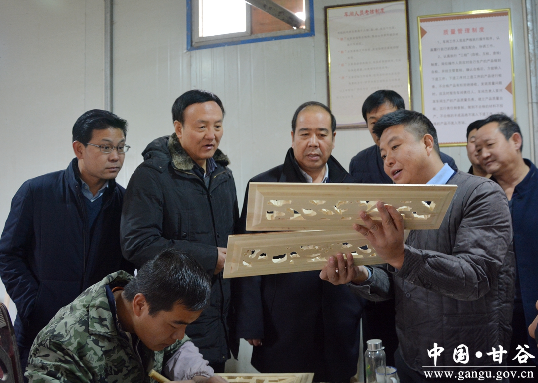 (在新兴镇蔡家寺村袭明古建有限公司检查考核) 考核组一行先后来到县残联、新兴镇、磐安镇、新兴镇蔡家寺村、甘谷县腾达职业技术培训学校、福利中心、百惠盲人按摩店、甘谷全录王辣椒产业发展有限公司等地,通过实地查看、查阅资料、随机提问、听取汇报等方式,对甘谷县2017年残疾人工作目标责任完成情况进行了检查考核,并入户看望慰问特困残疾人。