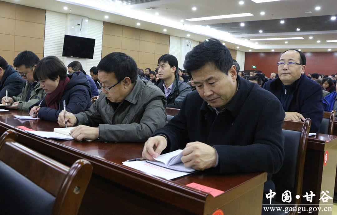 12月11日,市委副书记、市长王军到甘谷县宣讲党的十九大精神。他强调,甘谷县各级党组织和广大党员干部要深入学习贯彻党的十九大精神,以习近平新时代中国特色社会主义思想为指导,全面落实习近平总书记视察甘肃时的重要讲话和“八个着力”重要指示精神,牢固树立贯彻新发展理念,进一步深化县情认识,理清发展思路,完善工作举措,奋力开创甘谷发展新篇章。市政府秘书长王祥林出席宣讲报告会,甘谷县全体县级干部、各乡镇党委书记、县直各部门科级以上干部共计400多人聆听了宣讲报告。