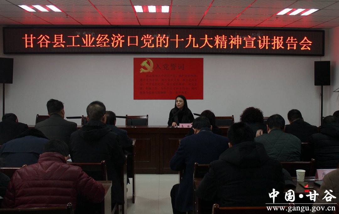 12月8日,副县长高丽为工业经济口党员干部宣讲党的十九大精神。