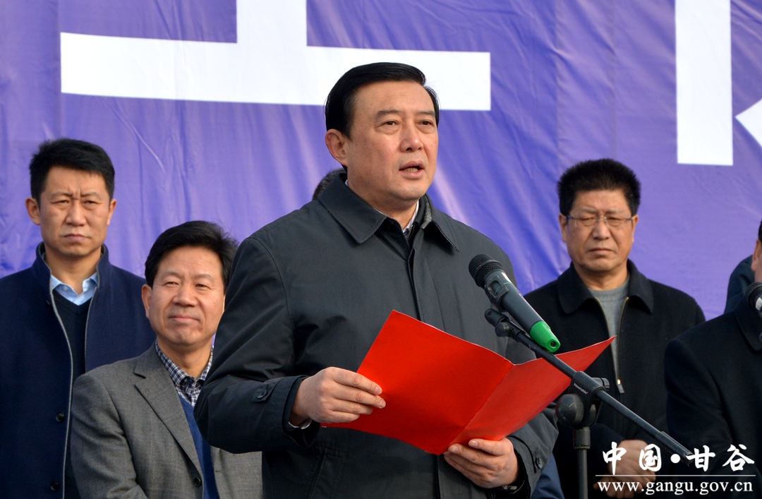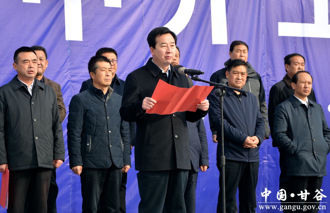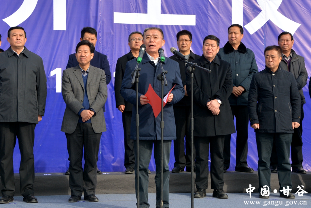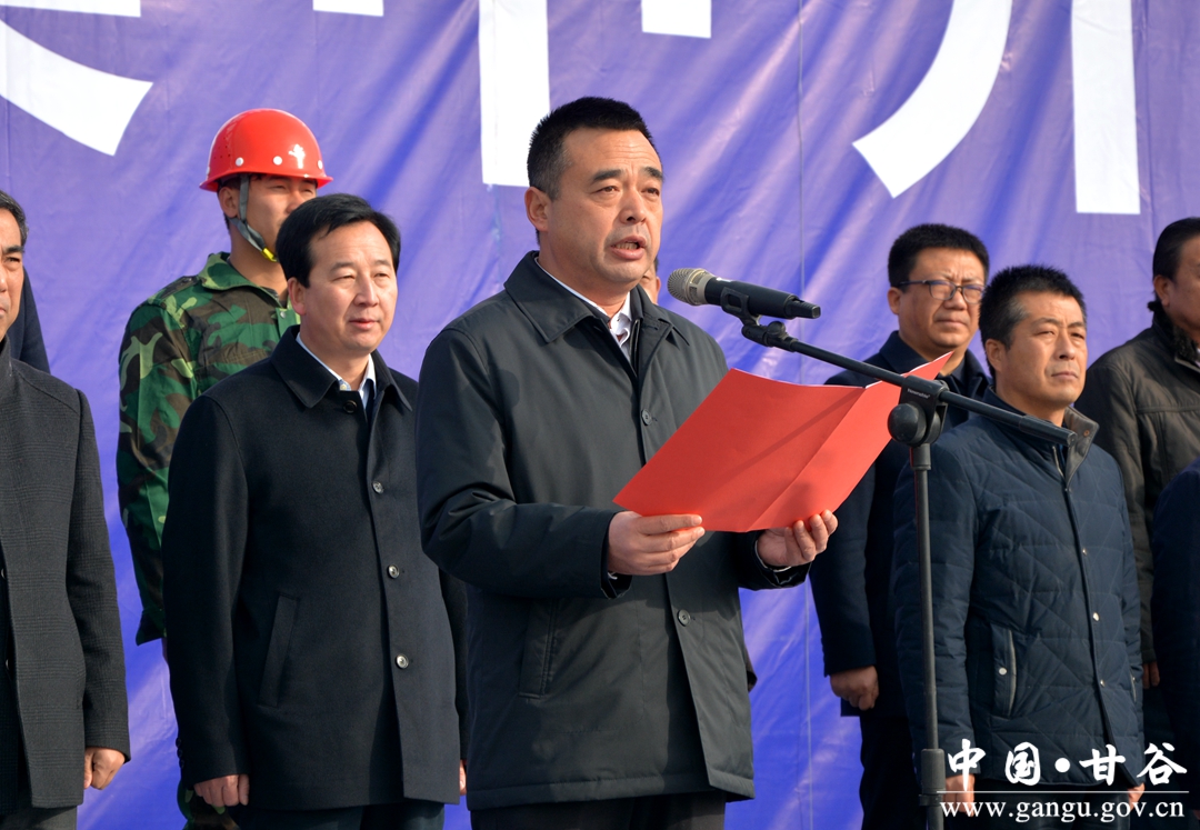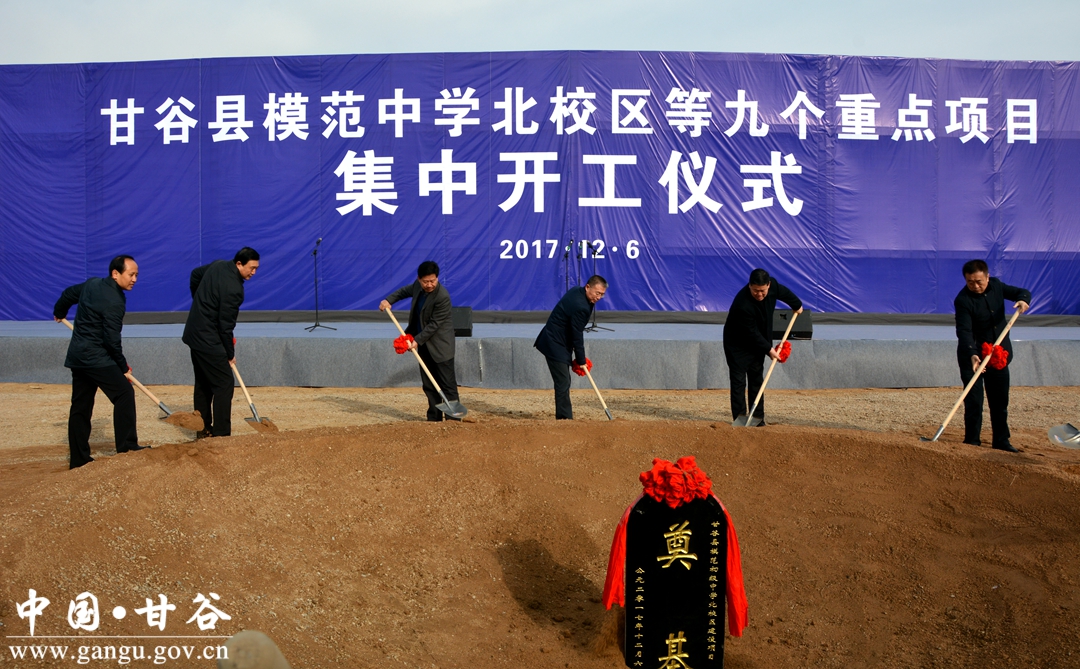 12月6日,甘谷县举行模范中学北校区等9个项目集中开工仪式,市委书记王锐宣布项目开工。