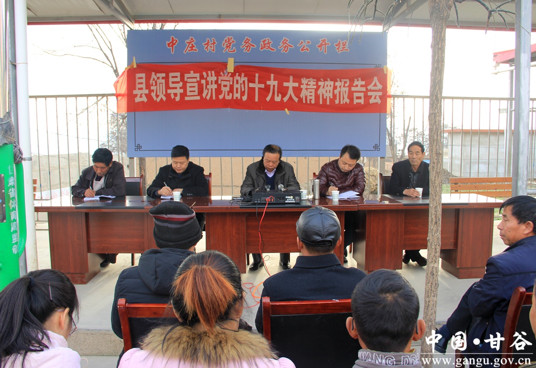 12月6日, 副县长郭中校深入大石镇中庄村,为镇村党员干部群众宣讲党的十九大精神。