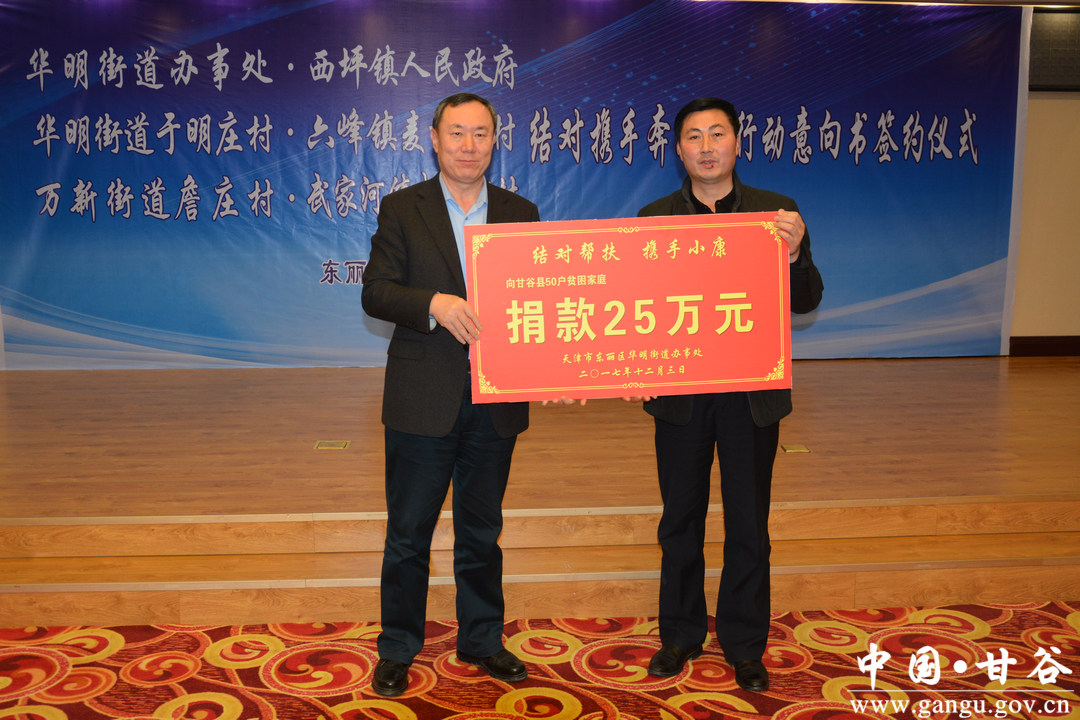 (东丽区人民政府向甘谷县贫困户捐赠25万元慰问金)