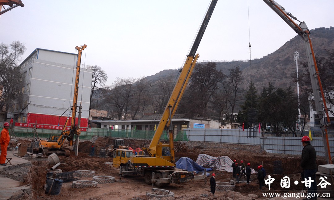(在甘谷一中查看学生公寓楼援建项目建设进展情况)