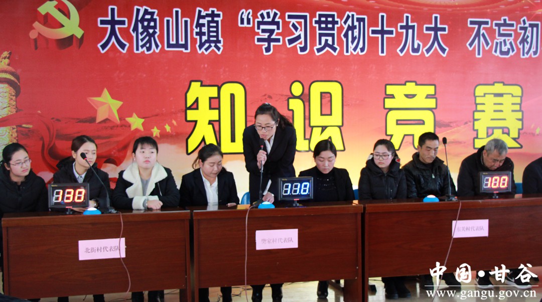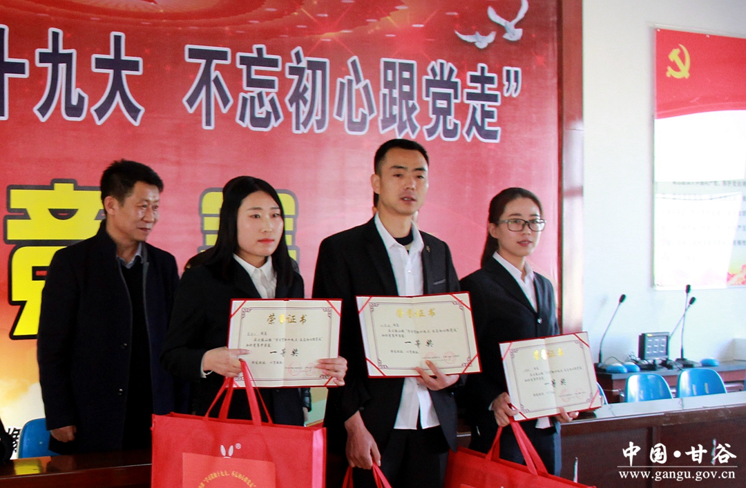 12月5日,甘谷县大像山镇举行“学习贯彻党的十九大 不忘初心跟党走”知识竞赛(决赛)。县委常委、组织部长冯建新,县委常委、大像山镇党委书记葛彦迪观看了比赛并为获奖队颁奖。