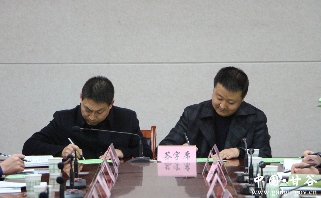 会议宣读了《甘谷县人民政府办公室关于印发甘谷县处置森林火灾应急预案的通知》,副县长杨宏与各乡镇负责人签订了护林防火责任书。
