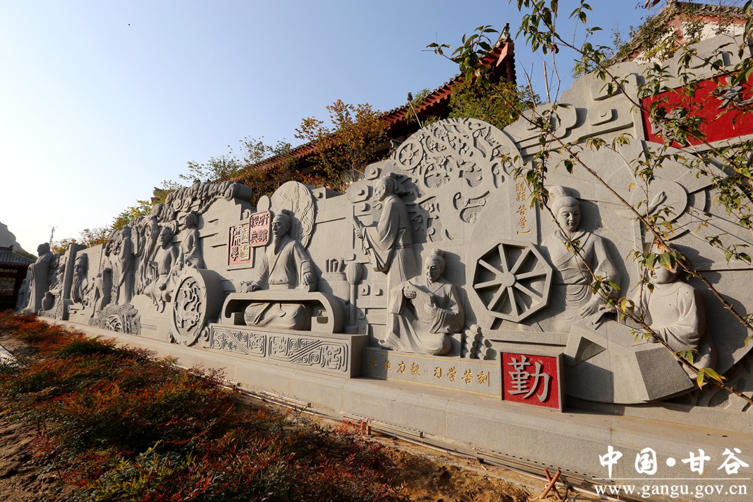 大像山下书辉煌。甘谷县在城市东西延伸拓展,逐步拉开城市框架,丰满城市用地空间。在西城区建成大像山水上公园的基础上,为了弘扬传承古冀文明,提升大像山公园文化内涵,斥巨资在公园内建成了以石作蜀、姜维生平事迹为主题的崇文园和尚武园。“两园”以艺术的形式,对有历史影响力的两位甘谷贤达人格精神进行挖掘开发,实现了以高尚的文化凝聚人、以先贤的榜样激励人、以名园风彩陶冶人的目的,让古冀城百姓们在享受美的同时,受到了文化的启迪。目前,崇文园、尚武园已成为全县爱国主义教育基地。