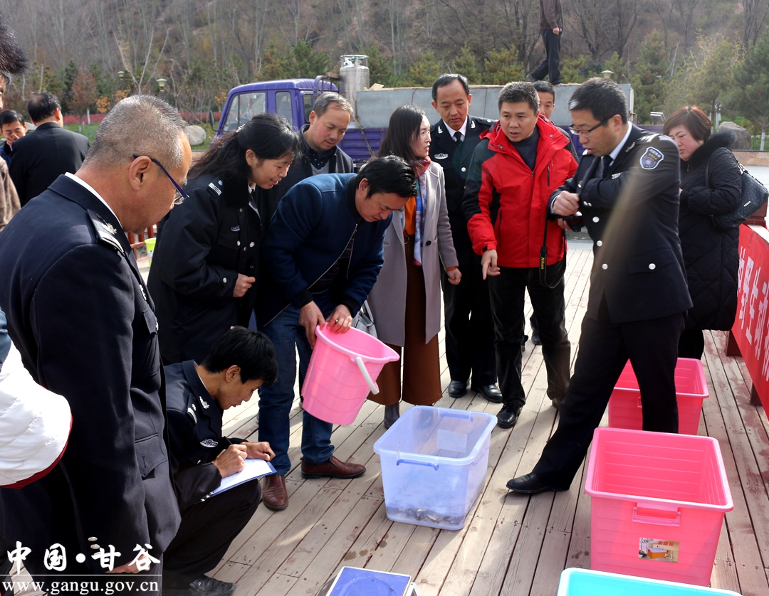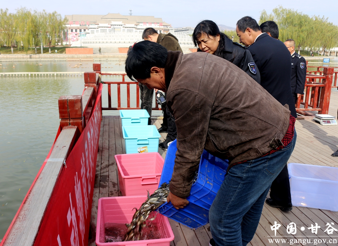 11月20日,天水市渔业资源增殖放流甘谷点在甘谷县大像山公园举行,共投放草鱼、鲫鱼、鲤鱼、鲢鱼等鱼种23多万尾。市渔业站、县畜牧兽医局及渔业站技术负责人、县公证处公证员、天水日报社记者参加了放流活动。