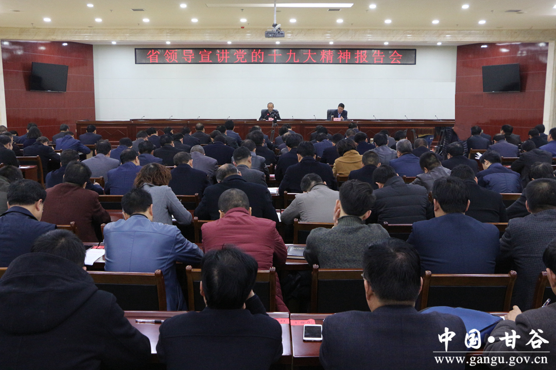 黄强在宣讲中指出,党的十九大是在全面建成小康社会决胜阶段、中国特色社会主义进入新时代的关键时期召开的一次十分重要的大会。大会取得的一系列重大成果,在党和国家发展进程中具有历史性意义。天水市各级党委政府要把学习宣传贯彻党的十九大精神作为当前和今后一个时期的首要政治任务,思想上高度重视,行动上高度自觉,结合本地本部门实际进行专题学习和研讨,对标要求、带着问题去学,确保学深悟透、把握实质、融会贯通。
