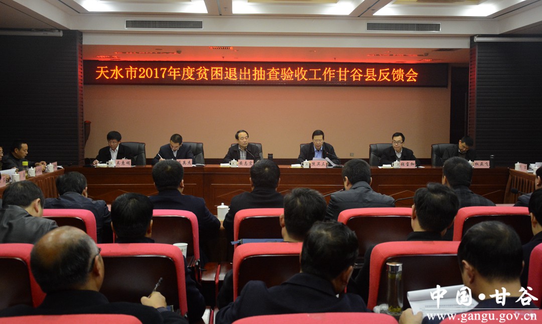 11月17日, 全市2017年度贫困退出抽验工作甘谷县反馈会召开。市人大常委会副主任、市第四抽查验收组组长安志宏,第四抽查验收组副组长熊卫三及市第四抽查验收组各成员出席会议;县委副书记任佩光,县人大常委会副主任颉明军,副县长杨宏、李春彦,县政协副主席郑建子;各乡镇、县直有关部门负责人参加会议。
