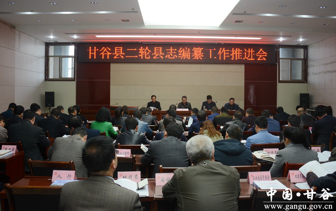 王刚主持会议。会上,朱德勇作了讲话;县志办负责人宣读《甘谷县推进编修甘谷县志(1985—2011年)工作实施意见》,通报了《甘谷县志》续志承编单位编纂进展情况。