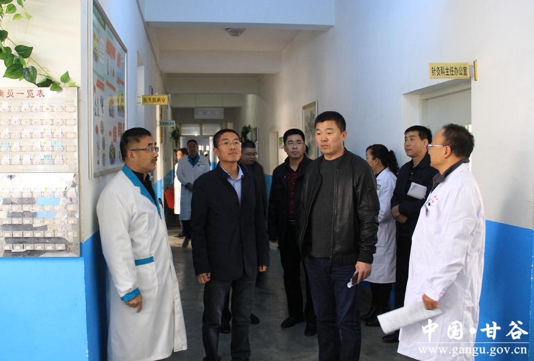 (在县人民医院调研) 10月26日,天津东丽区卫生和计划生育委员会副主任董广星带领调研组深入甘谷县,调研卫生事业帮扶工作。副县长牛武军、朱德勇及县卫计局负责人一同调研。