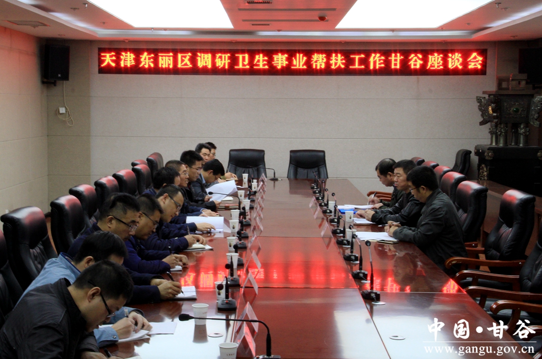牛武军对调研组一行到甘谷县开展帮扶工作表示热烈欢迎,对他们关心甘谷县医疗卫生事业发展表示衷心感谢,希望东丽区卫生和计划生育委员会能在人才队伍建设、学科建设、村卫生室建设等方面提供帮助;同时,甘谷县卫生计生系统要以东丽区对口帮扶为契机,虚心学习先进的管理经验和医疗技术,积极主动对接,提高医疗技术水平,进一步做好医疗服务工作,促进我县医疗卫生事业迈上新台阶。
