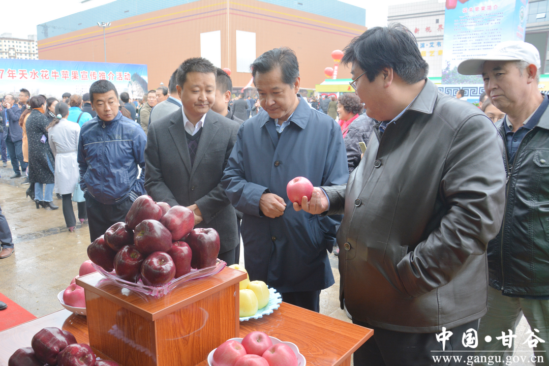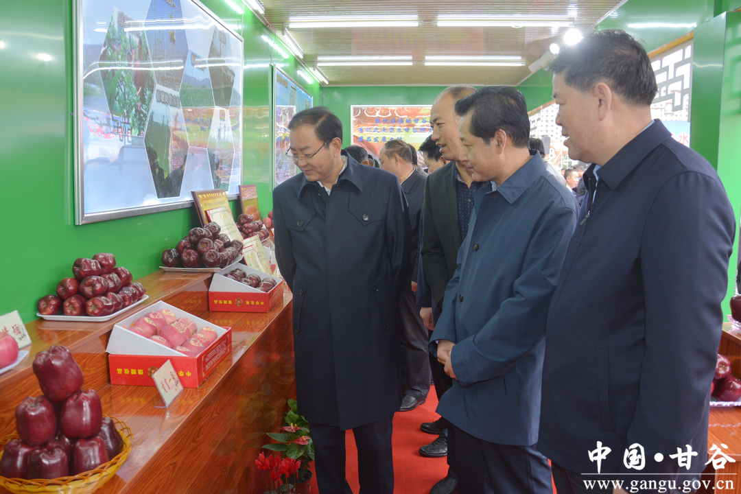 在参观甘谷展馆时,申君明强调,要以此次苹果宣传推介活动为契机,充分发掘甘谷林果产业优势,进一步加大宣传力度,广泛开展营销活动,有效拓宽林果产品销售渠道,不断提高甘谷苹果、花椒等林果产品知名度,加快品牌优势向经济优势转化。要加大招商引资力度,积极宣传推介甘谷区位优势、林果产业发展优势,沟通衔接参展企业,做好对接洽谈和服务,吸引更多客商了解甘谷林果产品、投资甘谷林果产业。要创新思路,转变观念,采取流转土地、大户承包等方式,不断加快林果产业示范基地建设步伐,着力做大做强林果产业,为促进贫困群众增收致富、加快全面建成小康社会建设步伐做出新的更大贡献。