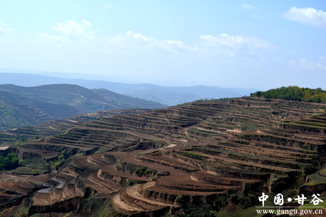 八月中秋,天高云淡。站在大庄梁俯视山山峁峁,目之所及,只见平平展展的梯田,层层展现出锦绣绸缎。大庄镇地处甘谷渭北干旱山区,全镇6.5万亩土地斜“挂”在七沟八梁一面坡上,“半”平地仅是“三分天下有其一”。三十度的山坡地累坏了庄户人,肩挑、人扛、畜驮是这里春种秋收的“千年风景”,能种上平土地,是世世代代大庄庄户人的夙愿。