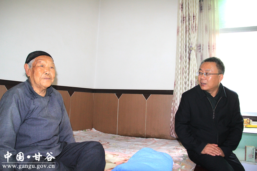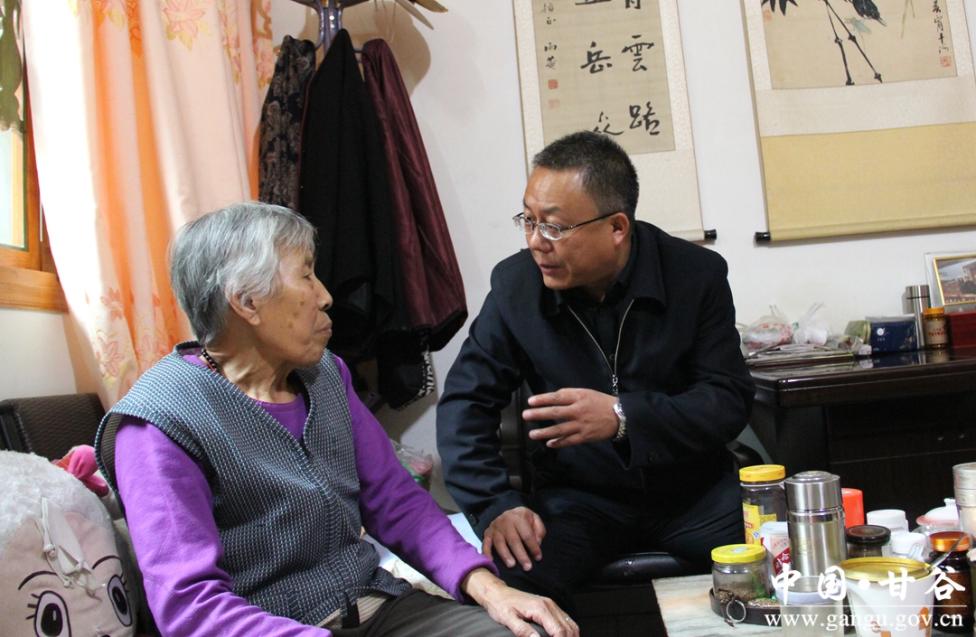 王刚在与黄蝶交谈中,了解到老人身体不好后,再三嘱咐老人要按时治疗,保重身体;并叮嘱镇村两级干部要关心老人身体状况,让老人感受到党和政府的关怀,乐观幸福的生活。