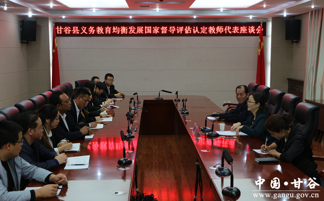 会后,评估组专家分别主持召开了县人大代表和政协委员座谈会、校长代表座谈会、教师代表座谈会、家长代表座谈会,全面了解甘谷县推进义务教育均衡发展的工作情况。