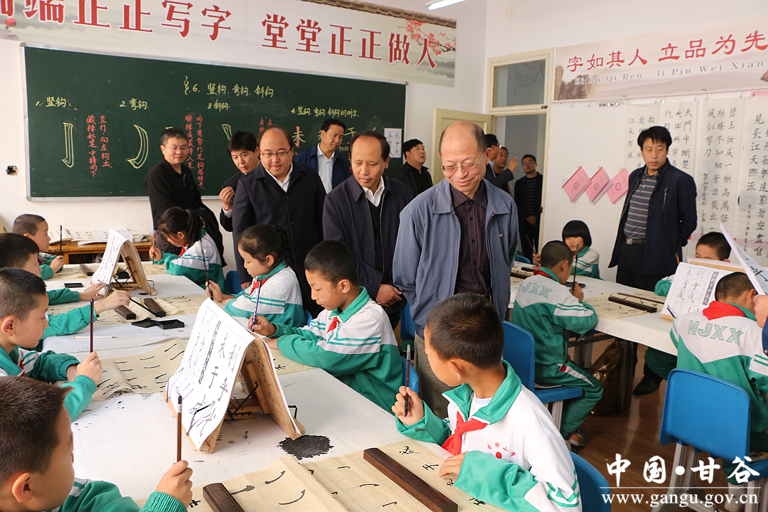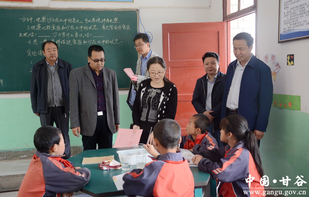 申君明汇报中说,甘谷县认真贯彻党的教育方针,坚持教育优先发展战略,紧盯建设全省教育强县目标,以改革创新为动力,以促进教育公平为重点,以提高教育教学质量为核心,全面履行政府职责、保障教育优先发展,狠抓基础设施建设、改善城乡办学条件,加强教师队伍建设、打造优秀教育团队,深化教育教学改革、全面提升教育质量,实施教育惠民工程、大力促进教育公平,推进校园安全联管、营造良好育人环境,全力推进义务教育均衡发展,义务教育办学条件大为改善,师资配置逐步趋于均衡,教育教学质量稳步提升,适龄儿童都能均等享有入学机会,县域义务教育实现基本均衡发展目标。截至目前,累计投入资金6.79亿元,全县义务教育学校由2011年的423所调整到381所,基本形成了“乡镇有初中校、片区中心村设完全小学、行政村保留教学点”的良好格局。