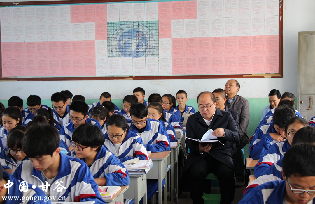 宫辉一行先后来到县特教学校、县一中等学校,通过听取汇报、现场查看、听课等方式,对我县近年来甘谷县教育发展情况进行了详细检查。