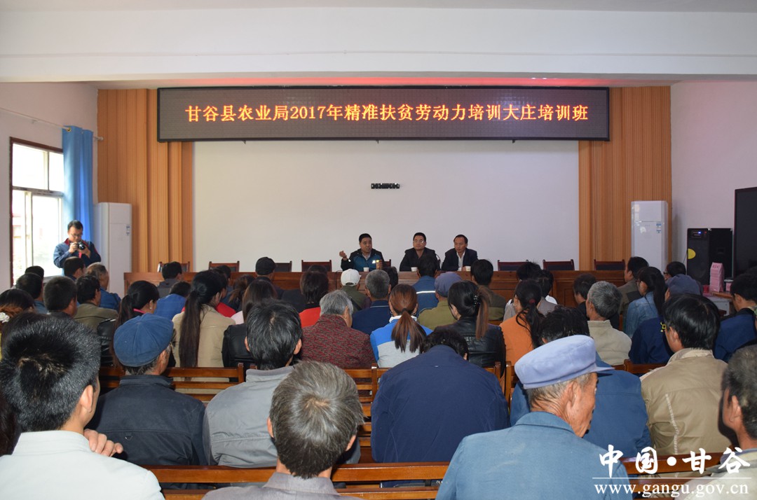 9月12日,县农业局在大庄镇举办精准扶贫劳动力培训班,来自全镇的104名贫困户代表参加了培训。