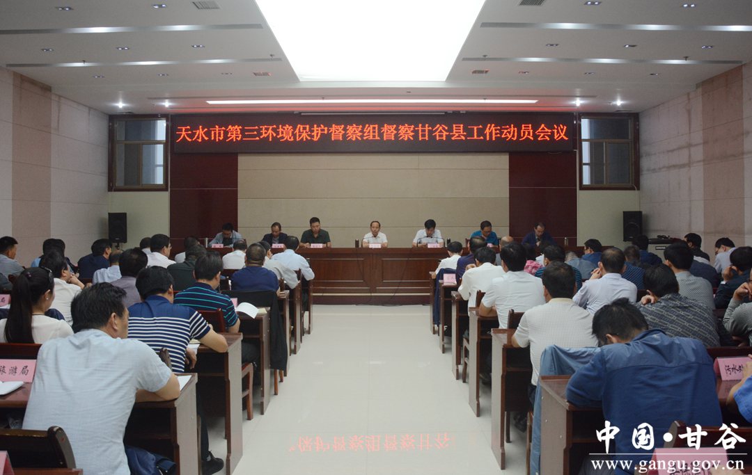 8月25日,天水市第三环境保护督察组督察甘谷县工作动员会议召开。市第三环保督察组组长张世钧,县委书记贾忠慧,副县长马福胜,县政府党组成员王瑾,县政协副主席郑建子及市第三环保督察组成员出席会议;县环境保护委员会成员单位主要负责人共计140多人参加会议。 会上,张世钧作了动员讲话,市第三环境保护督察组成员郭永平宣读了《天水市2017年环境保护督察方案》;贾忠慧主持会议并代表县委、县政府作了表态发言,副县长马福胜汇报了全县环保工作。