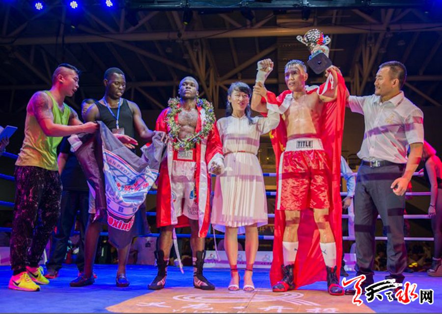 8月11日当晚总共有七场比赛,前六场比赛都是四回合比赛对阵,最后的压轴主赛,是由来自中国甘肃天水的34岁老将张永对阵来自刚果的21岁年轻拳手阿博亚·比尔达姆的6回合排名赛两人岁数相差整整13岁,对手是非常强壮具有杀伤力的,这对老将张永的体能是一次严峻的考验。 比赛一开始张永就用擅长的前手拳控制距离,刺拳连续命中!对手试图想用重拳ko张永,可是张永一直都没有给对手机会! 第二回合开始张永继续利用身高臂长的优势和步法,将对手控制在外围无法突破,对手节奏完全被张永控制。第三回合一上来对手就改变战术,开始了凶猛的进攻,张永避开了对手几次非常危险的进攻后,稍作调整又将对手带去自己的节奏!比赛还是完全控制在张永的节奏里。 第四回合双方的体能都到了疲劳期,老将张永为了节省体力,出拳次数明显下降,年轻的对手在回合后半段发起了攻击,一记重拳正中张永的侧脸颊,全场观众为张永捏了一把汗,经验丰富的张永采取了近身紧贴对手的战术,没有再给对手机会,迅速的化解了一次非常危险的危机。 第五回合对老将张永来说是一个考验,对手还是不断地寻找重创张永的机会,可是张永在这回合打的非常聪明,距离控制的没有给对手太多的机会,前手后手拳虽然出拳不多,但是命中率极高。
