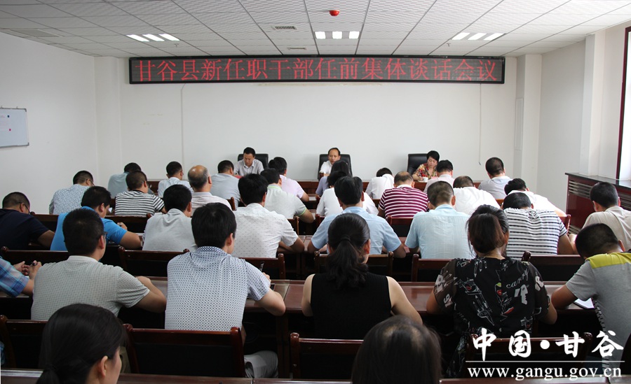 8月3日,甘谷县召开新任职干部任前集体谈话会议。县委书记贾忠慧,县委常委、纪委书记谢辉,县委常委、组织部长冯建新出席会议。