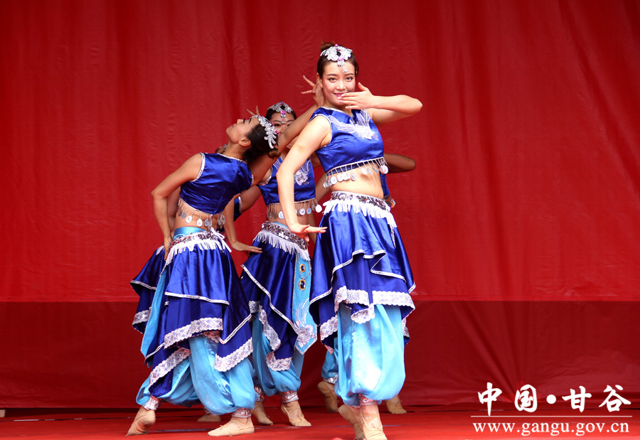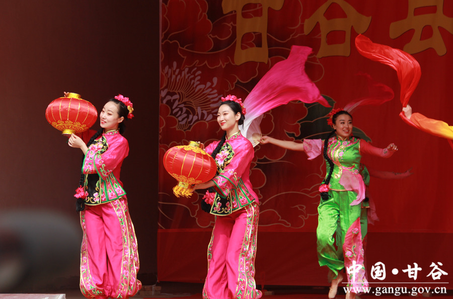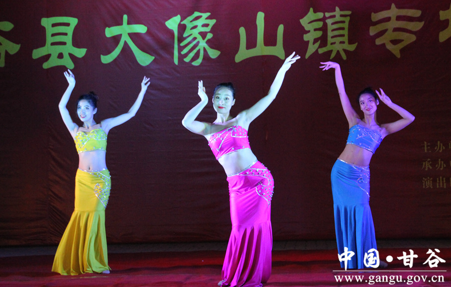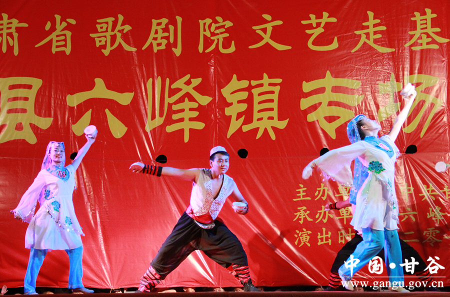 舞蹈《欢庆》 “我们精心挑选了一些经典的、老百姓喜闻乐见的节目,希望广大基层群众得到充分的精神愉悦,享受到社会文明进步的成果。”这是省歌剧院慰问演出的初衷。《欢庆》《 欢天喜地》《傣源》《青藏高原》《红高粱》《想亲亲》《紫色激情》《阳光路上》《我是不是最疼爱的人》《一杯美酒》《好运来》《节日欢歌》《照镜子》《歌曲串烧》《模仿秀》《盖碗茶》《胡璇》《最炫民族风》《咱们甘谷》……临时舞台上,一个个高水准又“接地气”的歌曲、舞蹈、小品演绎在乡间田野。