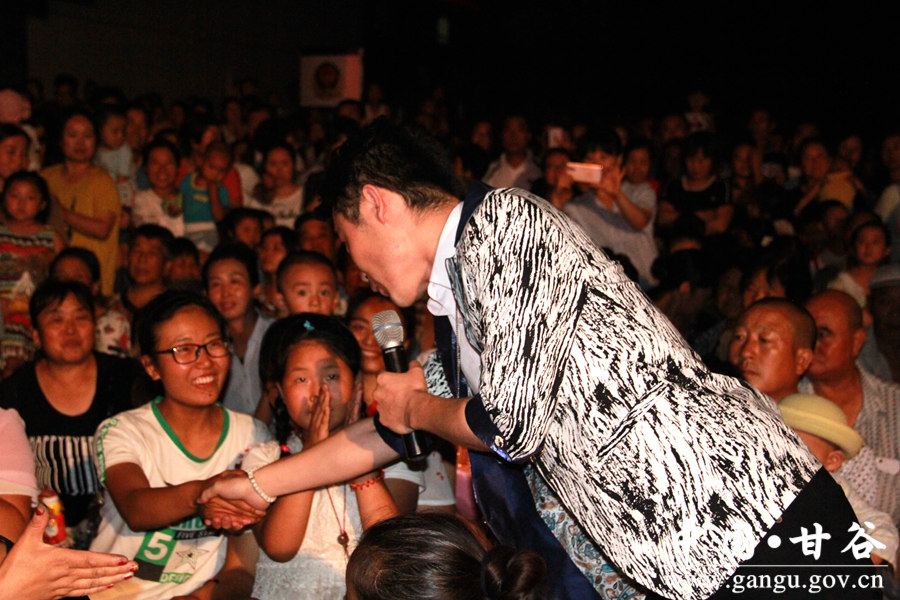 演出现场,演员的精湛表演和无私奉献精神,深深感动了每一位观众,赢得了一次又一次热烈的掌声。台上与台下的互动拉近了演员与群众心与心的距离,现场顿时显得格外沸腾,欢呼声、惊叫声和掌声交织在一起,照相机的闪光灯和手机上的银屏使得演出现场更具迷人色彩。“平时只能在电视里看到高水平的表演,今天来到我们身边,感觉很高兴。现在群众过上了好日子,盼望更多的文艺演出。”年过花甲的张心定老人掩饰不住内心的兴奋。