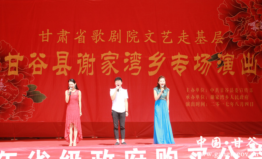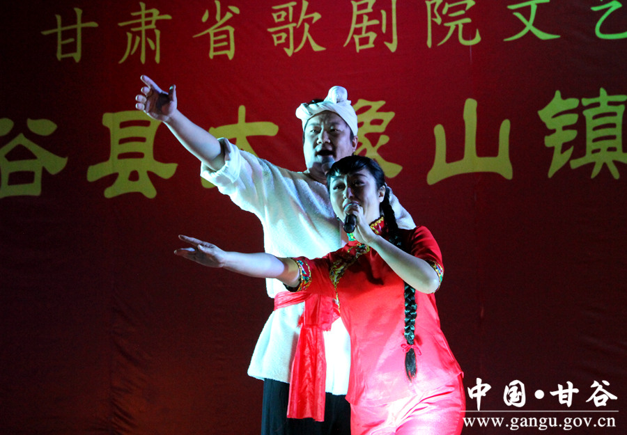 《咱们甘谷》 没有设施齐全的剧场,乡村简朴的天然场地却别有风韵;没有富丽堂皇的舞台,但临时搭建的简易台子,却把高雅艺术送到了群众家门口,将欢乐幸福播撒在乡间田野。
