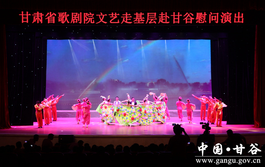 7月31日-8月1日晚,甘谷大剧院歌舞飞扬,掌声如潮。甘肃省歌剧院文艺走基层慰问演出正在这里浓情上演。县委书记贾忠慧、县人大常委会主任令建民、县政协主席马骥等县四大组织领导及部分干部群众观看了演出。