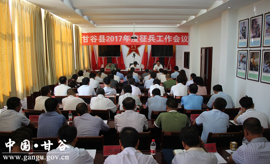 7月25日,甘谷县召开2017年度征兵工作会议,贯彻落实全国和省市征兵工作电视电话会议精神,回顾总结2016年全县征兵工作,安排部署2017年全县征兵任务。 县委副书记、县长、县征兵领导小组组长申君明,县委常委、副县长、县征兵领导小组副组长王志高,县人武部部长何开绪出席会议;各乡镇负责人、武装部长及县征兵工作领导小组成员单位负责人、廉洁征兵监督员共60余人参加会议。 会上,申君明作了讲话;王志高宣读建立廉洁征兵“零报告”和征兵监督员制度的《通知》,并代表县征兵领导小组与各乡镇签定了征兵责任书;何开绪主持会议并安排部署了2017年度征兵工作。会上还为廉洁征兵监督员颁发了聘书。