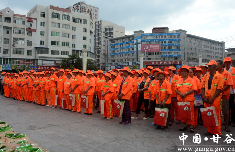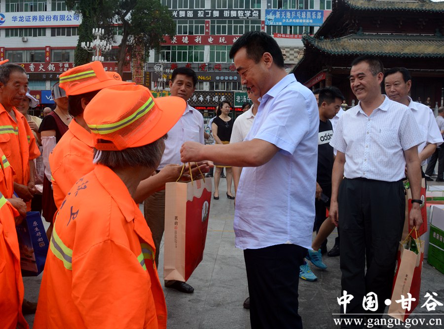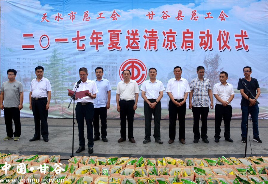 7月26日,市总工会、县总工会在大什字广场举行“夏送清凉”活动启动仪式。市总工会党组书记、常务副主席郭世文,市总工会副主席沈忠;县委副书记任佩光,县人大常委会副主任王金生,县政协副主席马清平出席仪式,县直有关部门负责人和部分环卫工人共计300多人参加仪式。