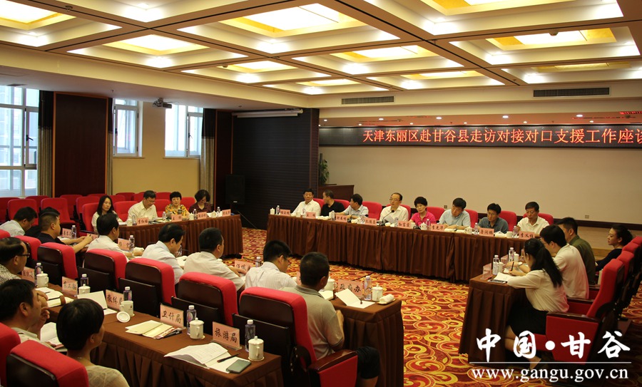 7月19日,天津市东丽区区委副书记、区长孔德昌,区人大常委会主任孙富霞,区政协主席钟书明,副区长李光华带领区政府办、合作交流办、招商局、卫计委、教育局、人社局等相关部门负责人,深入甘谷县走访对接对口支援工作。副市长霍卫平,县委副书记、县长申君明,县委副书记任佩光,副县长杨宏、朱德勇及县直相关部门负责人陪同。 孔德昌一行先后来到甘谷一中、腾达职业技术培训学校、大漠行麻编鞋业有限公司、县二中、大像山公园、磐安镇燕家韭菜标准化示范基地等地进行调研考察。