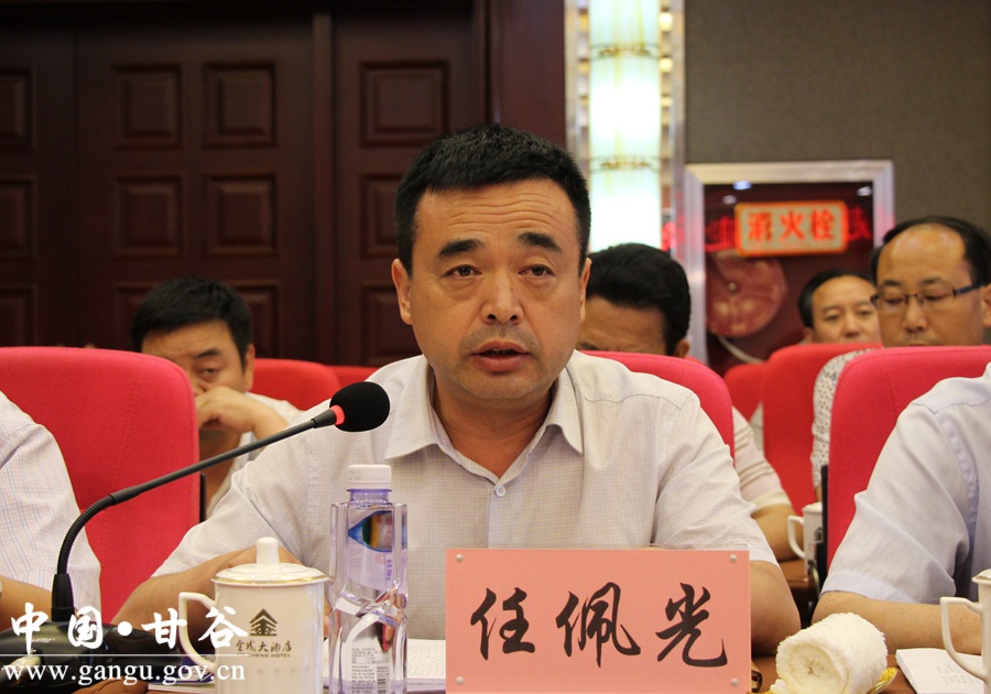 (县委副书记任佩光介绍甘谷县关于携手奔小康行动意向书对接落实进展情况)