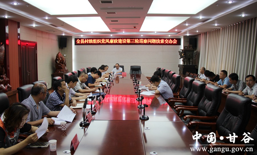 7月21日,甘谷县召开村级组织党风廉政建设第三轮巡察发现问题线索交办会。县委常委、纪委书记谢辉出席会议; 县纪委有关负责人及大像山镇、新兴镇、谢家湾乡等乡镇党委书记、纪委书记参加会议。 会上,谢辉作了讲话,并与各乡镇党委负责人签字移交了巡察发现的问题线索; 新兴镇、八里湾镇等乡镇负责人作了表态发言。