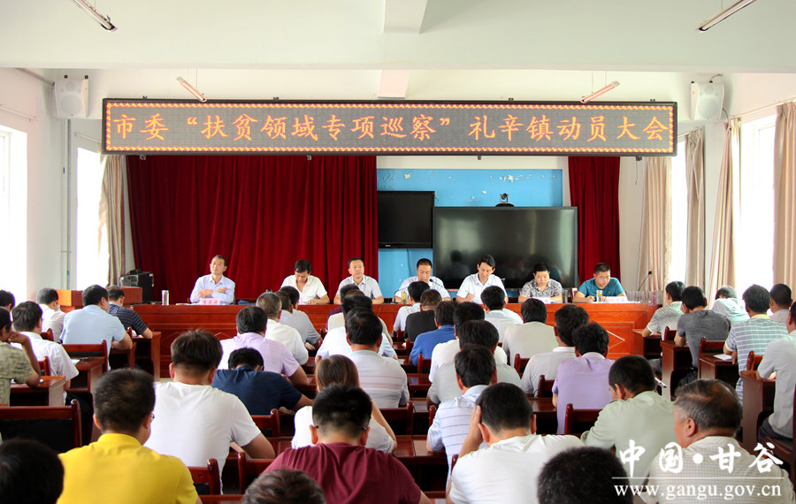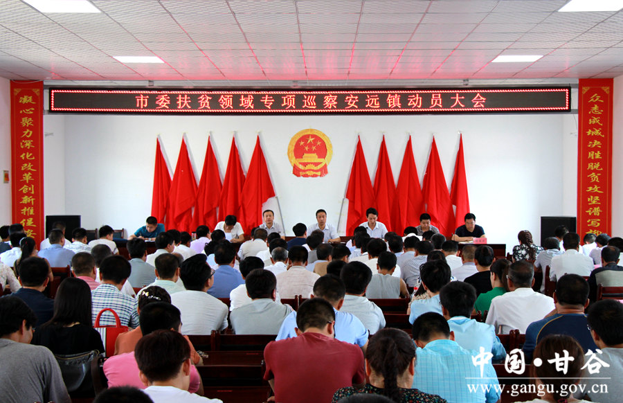 按照市委统一部署,市委第三巡察组进驻甘谷县,对六峰镇、安远镇、礼辛镇开展为期两个月的扶贫领域不正之风和腐败问题专项巡察。7月18日,巡察组在六峰镇、安远镇、礼辛镇分别召开动员大会,安排部署巡察工作。 动员会上,市委第三巡察组组长、市文化旅游局副局长高宇峰宣读了市委办《关于集中整治扶贫领域不正之风和腐败问题专项巡察工作实施方案》并就巡察工作提出了明确要求;市委第三巡察组副组长、麦积山大景区管委会纪工委书记苟东波作了讲话;六峰镇、安远镇、礼辛镇主要负责人分别作了述职述廉报告。大会还进行了民主测评,公布了巡察组联系电话。县委常委、组织部长冯建新主持会议。