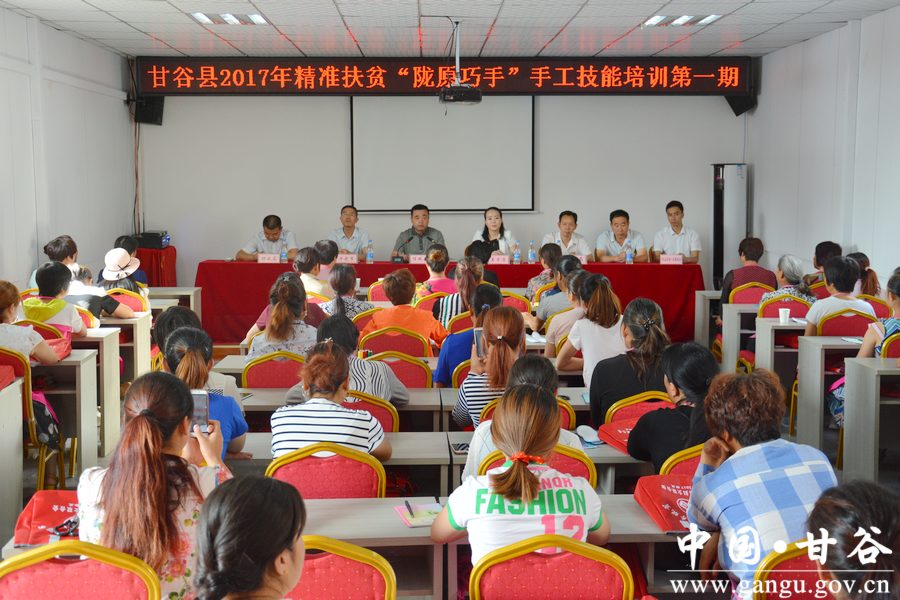 7月10日,甘谷县2017年“陇原巧手”手工编织技能培训班开班。县委副书记任佩光、副县长牛武军出席开班仪式,县妇联、财政局、人社局、雅路人麻编鞋业有限公司负责人及磐安镇、新兴镇、谢家湾乡等3乡镇23个村的贫困妇女共计100多人参加培训。