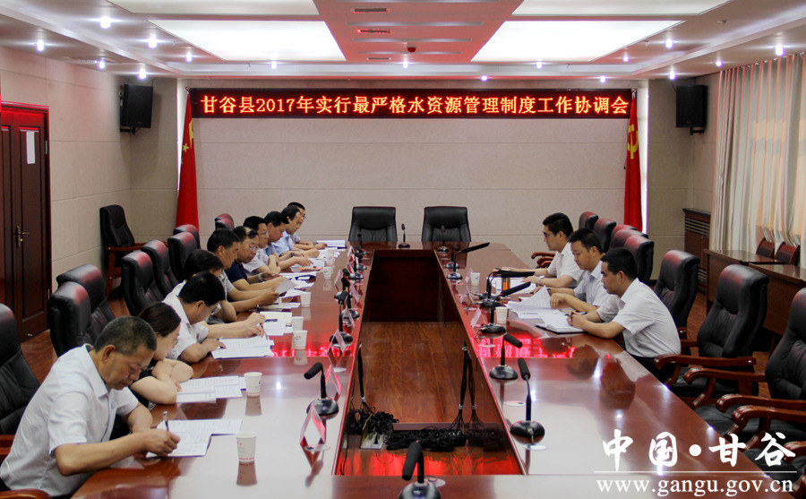 7月7日,甘谷县召开2017年最严格水资源管理制度考核工作协调会。副县长杨宏出席会议并讲话;县政府办、水务局、住建局、发改局、财政局等相关部门单位负责人参加会议。