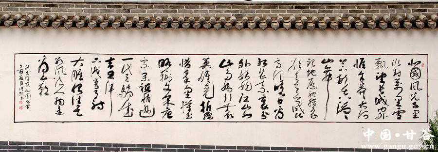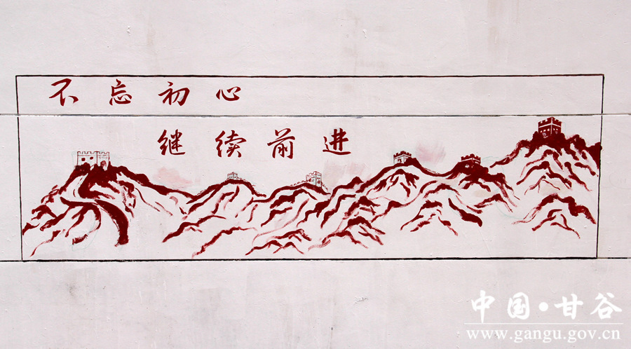 采访中,记者刚好碰到正在现场协调指导创作的县文联主席张泽中,他告诉记者,这条文化长廊共分四大块,第一块以“两学一做”学习教育、党风廉政建设、社会主义核心价值观宣传教育和村规民约为表现主题;第二块以当地历史名人、传统国学经典为题材进行创作;第三块以甘谷八景、石窟文化、三国文化等为表现素材;第四块着力突出全县四大支柱产业和特色产业。本次活动由县内20多名书协、美协会员组成创作团队,并专门购置了防晒防雨颜料,计划创作书画作品1000多幅。 打造文化长廊是甘谷县创建省级文明县的一项重要举措,对于发挥文化成风化人、润物无声的渗透作用,美化城乡人居环境,营造更加和谐优美、向上向善的文明环境,创建富有地方特色与文化内涵的文明城市具有十分重要的意义。