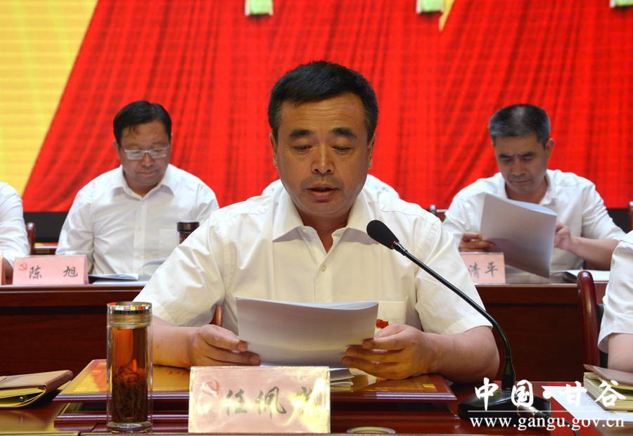 (县委副书记任佩光宣读《中共甘谷县委关于表彰先进基层党组织、优秀共产党员和优秀党务工作者的决定》)