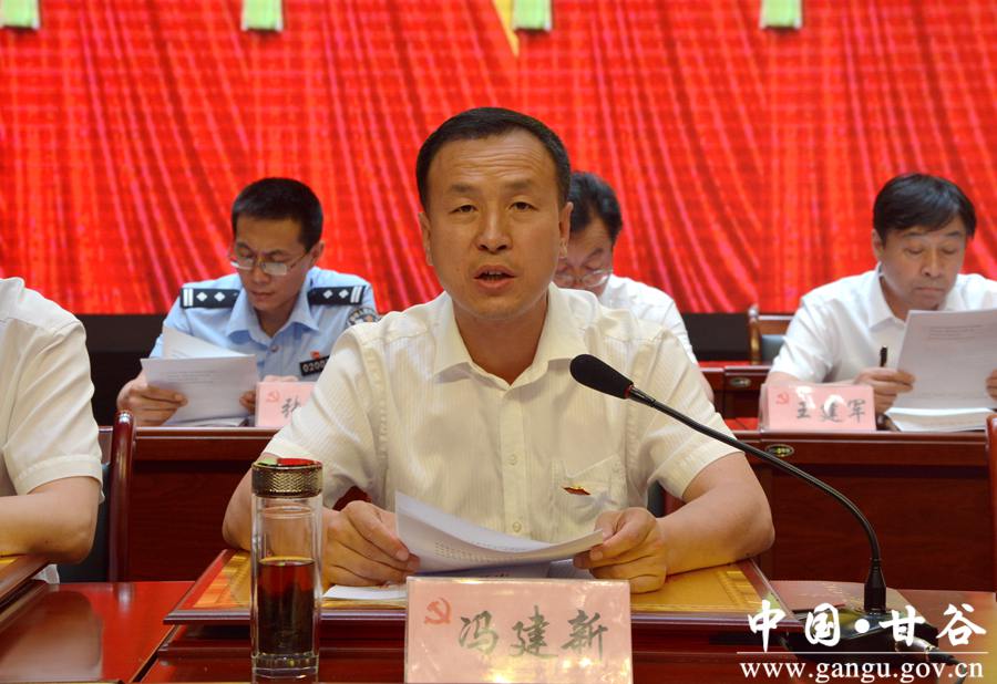 (县委常委、组织部长冯建新宣读《中共甘谷县委关于命名表彰奖励全县基层党建示范点的决定》)