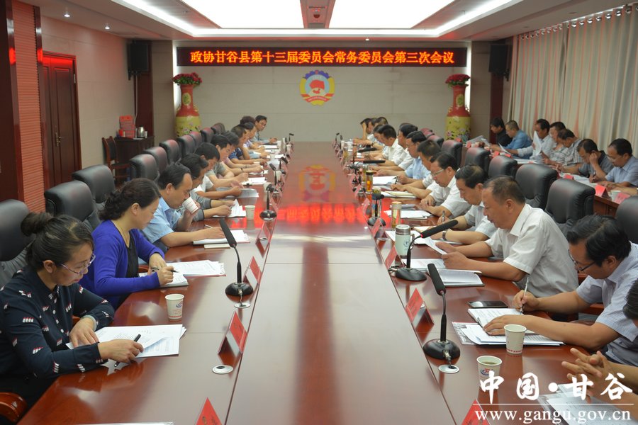 6月30日,政协甘谷县第十三届委员会常务委员会召开第三次会议。县政协主席马骥主持会议并讲话;县政协副主席董成斌、陈旭、田小龙、郑建子、马清平及常务委员出席会议。副县长杨宏及相关部门负责人列席会议。 本次会议应到常委40名,实到36名,符合章程规定。 会议传达学习了省第十三次党代会精神和县委政协工作会议精神,审议通过了县政协关于全县精准扶贫精准脱贫政策措施落实情况的视察报告、关于加强和规范城区秩序管理专题协商情况的报告、关于全县义务教育均衡发展情况的调研报告。