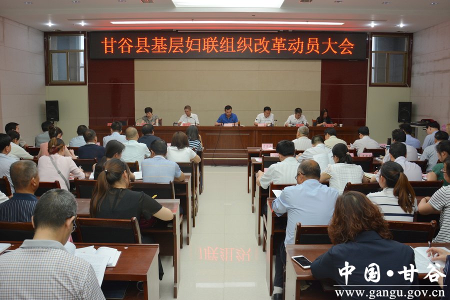 6月23日,甘谷县召开基层妇联组织改革动员大会,县委副书记任佩光、县人大常委会副主任王金生、副县长牛武军、县政协副主席马清平出席会议;县妇联改革领导小组成员单位的负责人,各乡镇党委书记、分管领导、妇联主席,村党支部书记代表及部分县直单位妇委会主任共计80多人参加会议。 会上,任佩光作了动员讲话;牛武军主持会议;县妇联负责人宣读了《甘谷县县妇联组织改革的实施方案》,并就基层妇联组织改革工作中应注意的问题做了详细的辅导讲解;六峰镇、磐安镇张家沟村负责人分别作了表态发言。